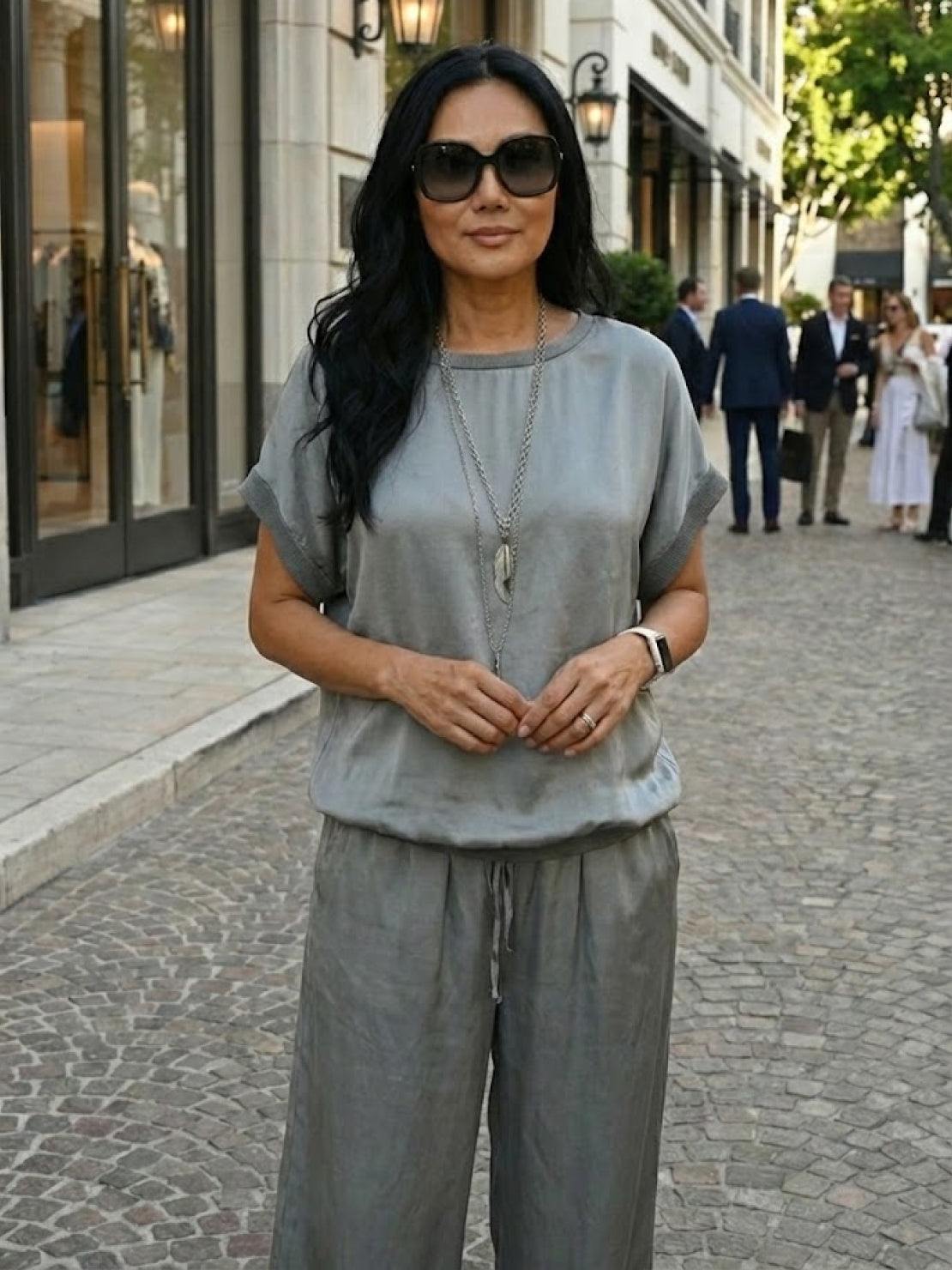 - This satin set moves with you - The fabric flows as you walk, giving you that luxury feel while letting you move freely all day.