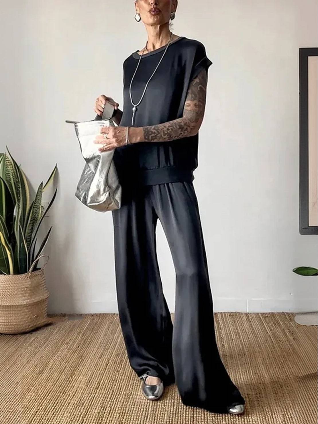 - It flatters your shape - The top slims your upper body, and those wide-leg pants give you room to breathe while looking absolutely elegant.