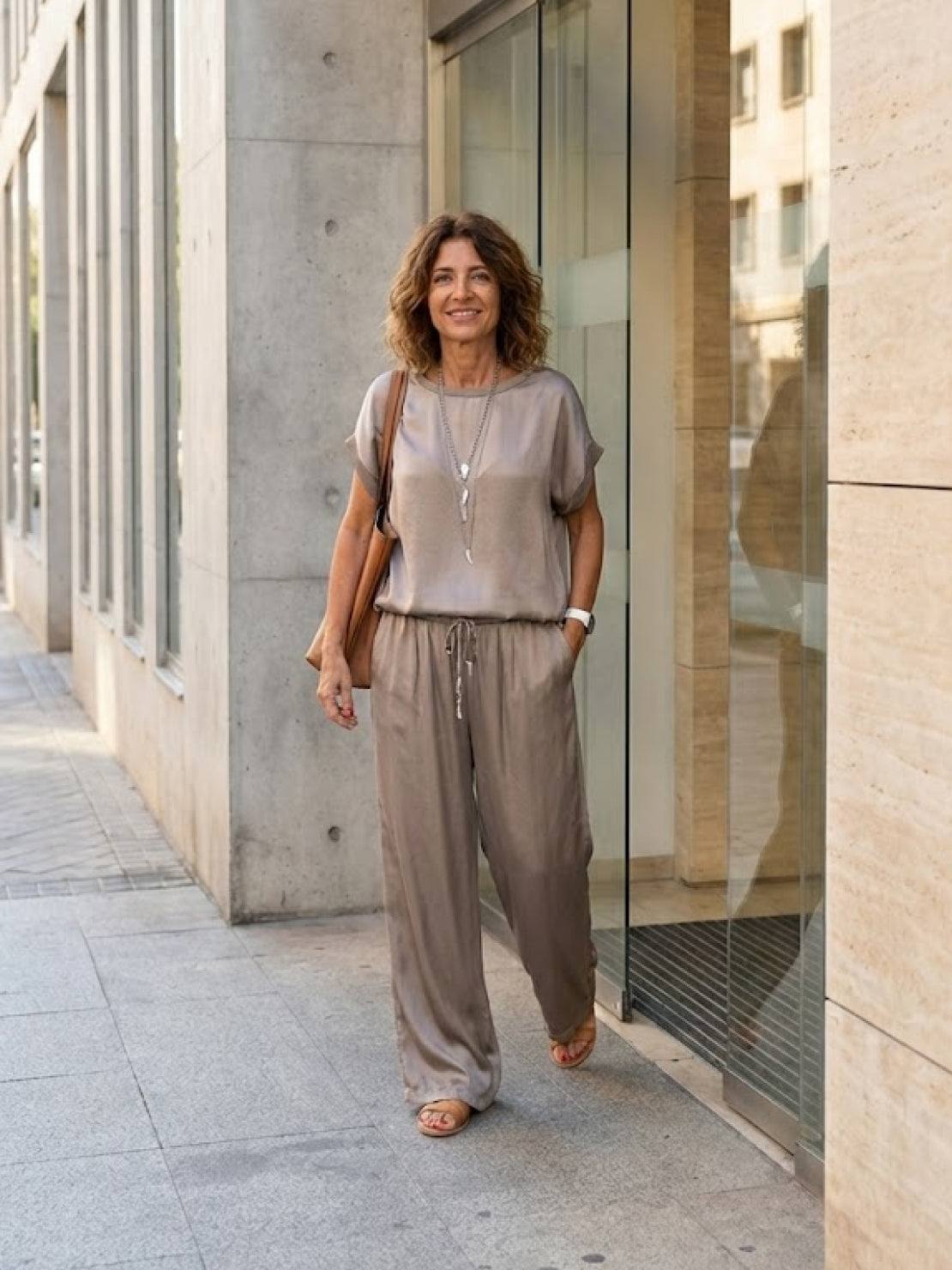 - This satin set moves with you - The fabric flows as you walk, giving you that luxury feel while letting you move freely all day.